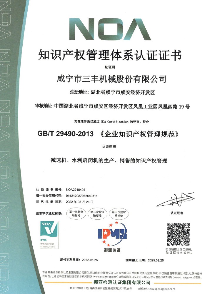 知識(shí)產(chǎn)權(quán)管理體系認(rèn)證證書(shū)